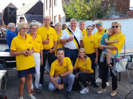 Dit jaar vaardigde het 28- koppig N-VA-bestuur van Erpe-Mere een delegatie af van een tiental bestuursleden die in knalgele t-shirts hun rondgang deden.